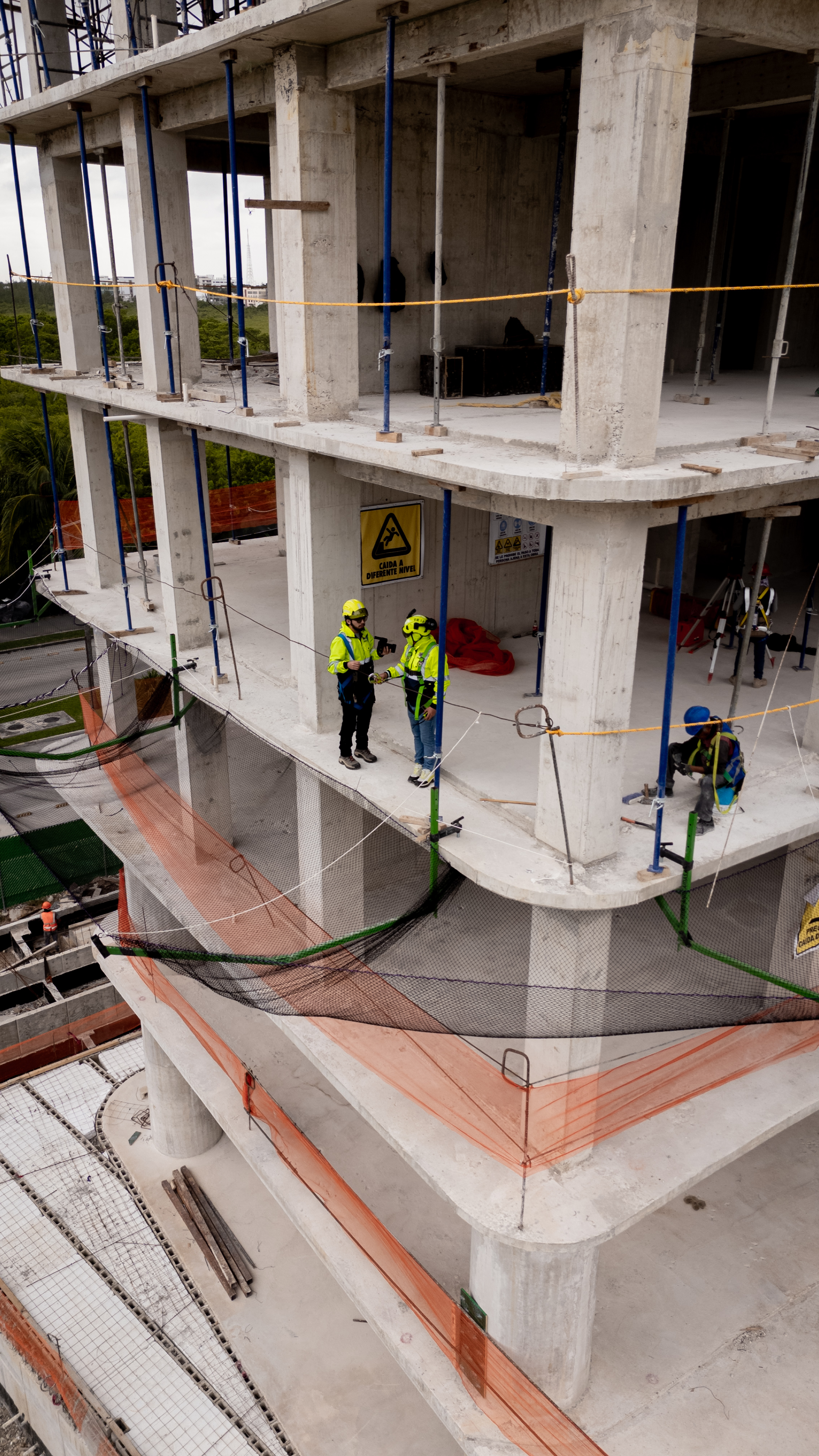 La seguridad colectiva se adopta como eje principal de los trabajos en altura debido a que constituye la medida preventiva más eficaz para reducir el riesgo de caídas durante la ejecución de actividades constructivas. Este tipo de sistemas actúa directamente sobre el área de trabajo, generando una protección permanente que no depende de la correcta colocación, uso o supervisión individual de los trabajadores, sino que protege de manera simultánea a todo el personal expuesto. La implementación de redes anticaídas permite controlar el riesgo desde el entorno, minimizando la posibilidad de accidentes graves, mejorando la organización del frente de trabajo y garantizando condiciones más seguras y estables durante el desarrollo de la obra. Asimismo, la seguridad colectiva facilita el cumplimiento de los criterios técnicos y normativos aplicables, promueve una cultura preventiva y contribuye a la continuidad operativa del proyecto sin interrupciones derivadas de incidentes o situaciones de riesgo.